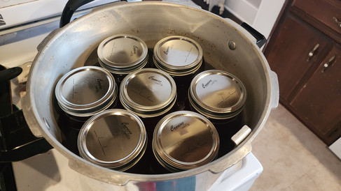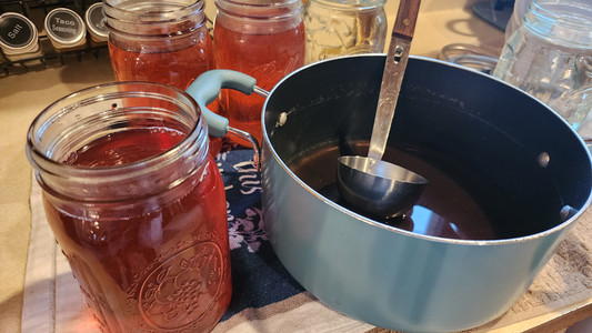 Ladle the juice into your sterilized jars, making sure the jars are at least at room temperature before filling. Leave about 1/4 - 1 inch headspace. I like to use quart jars for this recipe. Cover filled jars with a towel until all have been filled.