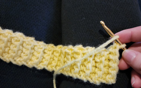 For this project, I used one skein (364 yds) of 100% acrylic yarn. The brand is Red Heart, and the color I used was lemon. These leg warmers would also be really cute in other colors, like gray, white, or purple. The yarn thickness was medium (4), so I used my 5.0 mm hook. This project only uses two different stitches, so it's simple to put together.