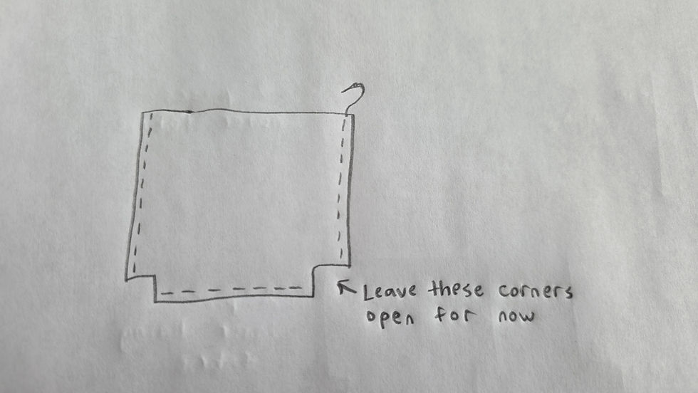 Sew the pocket on, leaving the top open for later use.